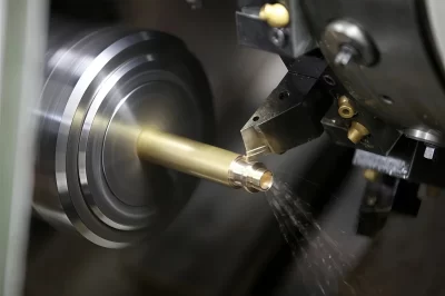 The workpiece rotates at high speed, and the cutting tool feeds axially, suitable for machining cylindrical or rotating parts.